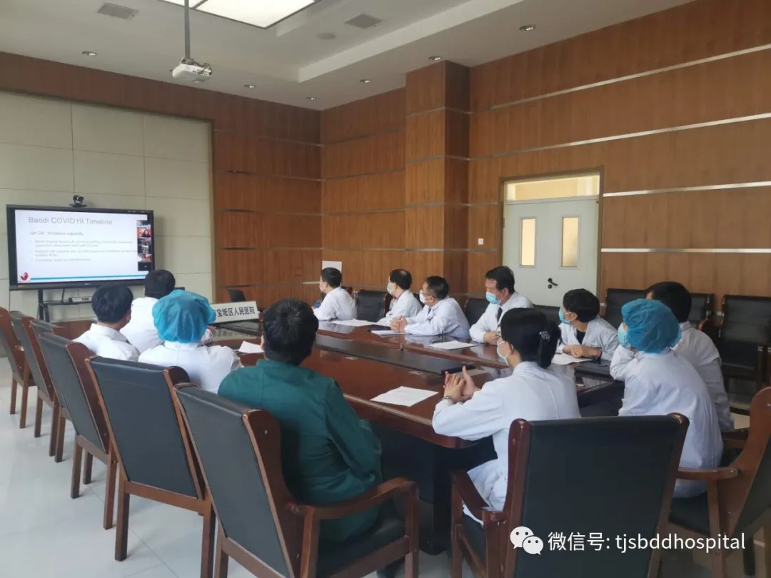 会议首先由门学博院长介绍了宝坻区人民医院的概况和新冠肺炎防控相关工作的开展情况。呼吸与危重症医学科单淑香主任分享了我院新冠肺炎疫情防控的经验和典型病例。急救医学科主任何振芬、胸外科主任史学军、重症医学科副主任陈志诚等专家分别就美方医学界人士关切的问题进行了详细解答。