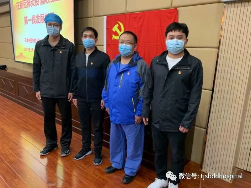 新冠肺炎疫情发生以来,这4位医疗队员作为天津市第一批支援武汉医疗队员在湖北省武汉钢铁集团第二医院开展医疗救助,并向党组织递交了入党申请书。在那里他们远离家乡和亲人,克服了语言不通、环境阴冷、早期医疗物资不足等诸多困难誓与新冠肺炎病毒斗争到底。他们不畏艰险,勇毅前行,战斗在前,冲锋在前,奉献在前,真正做到全心全意为患者服务,起到了模范作用,完全符合党员标准,经天津市医疗救治队党组织考察,在新冠肺炎防控一线火线入党,成为中共预备党员。