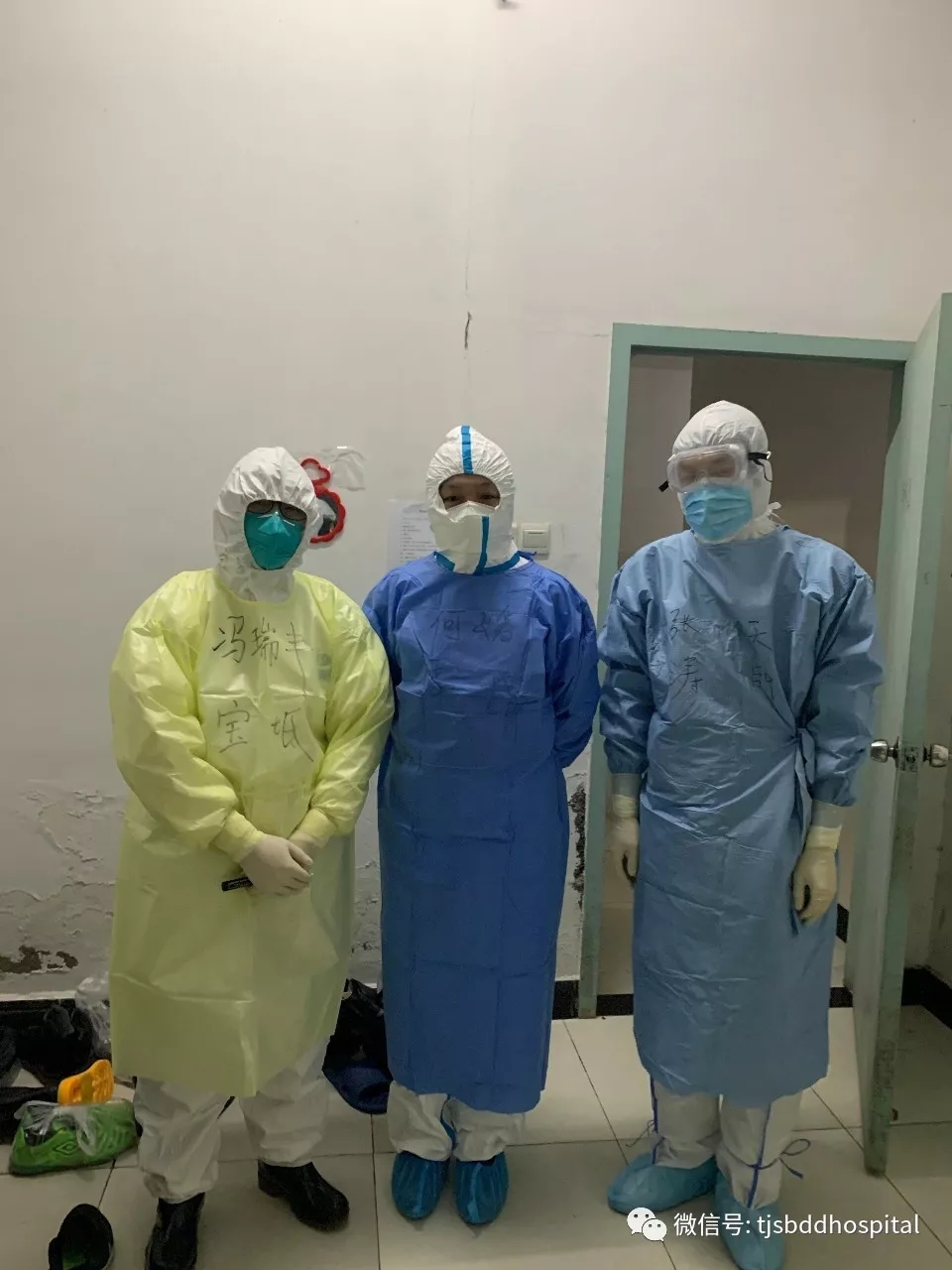 在战斗岗位上我们是4小时一个班,连同穿脱隔离衣大概一班需要6个小时。每次下班后的任务就是向宝坻区人民医院的同志们和家人报平安,向书记、院长汇报一天的工作,他们时刻牵挂着我们,就像对自己小孩子说话一样,反复叮嘱。全院职工都在惦记着我们,每天都能接到慰问的电话和微信;主任、护士长每天都会向我们嘘寒问暖。我们5个人目前精神状态很好,基本适应这里的环境,每天我们都召开例会,总结工作经验,相互了解身体与心理状态,我们相互支持鼓励,目前已经在这里站稳脚跟,以后的工作、生活会越来越顺畅。