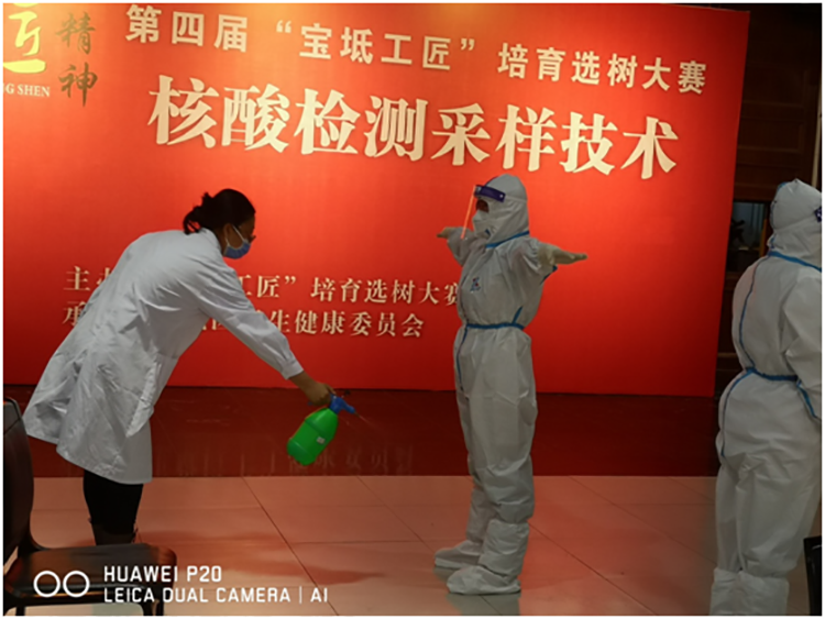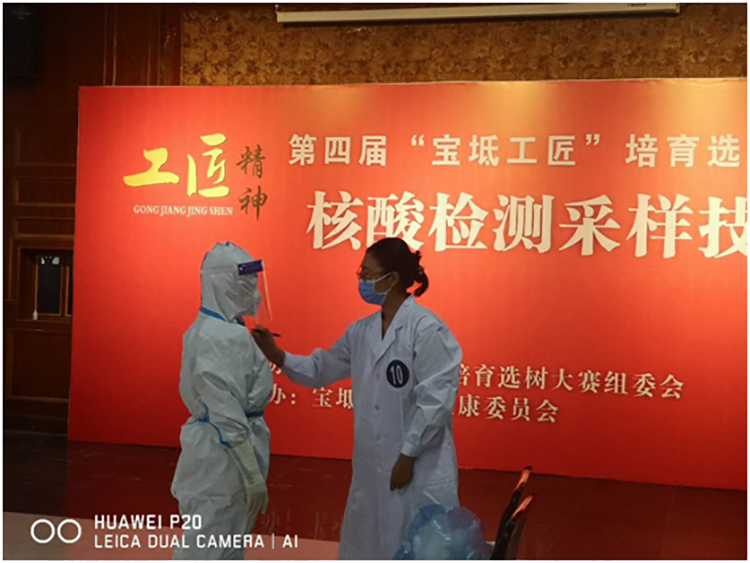 10月28日,由“宝坻工匠”培育选树大赛组委会主办,区卫健委承办的核酸检测采样技术决赛在宝坻卫校举行,来自区卫生健康系统的43名医护人员参加比赛。我院感染科主治医师高金华获大赛第一名。
