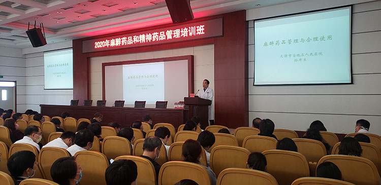 本次培训邀请了天津市医科大学第二附属医院疼痛科史可梅主任与我院药剂科孙井生副主任进行授课。史可梅主任做了“阿片类药物滴定及爆发痛处理”专题讲解,依据临床指南及专家共识和大量临床实际病例对临床常用镇痛药物、癌痛药品的合理使用,包括癌痛三阶梯治疗方案、阿片类滴定方法、强阿片药物的规范化使用及选药原则、如何预防和处理阿片类药物不良反应、阿片类药物使用的常见误区及注意事项等方面进行了培训。孙井生副主任做了“麻醉药品管理与合理使用”讲解,对照我院毒麻精药品的管理制度,对储存、麻精药品处方开具等方面进行了讲解,旨在加强医药人员对麻精药品的重视,保障患者用药安全。